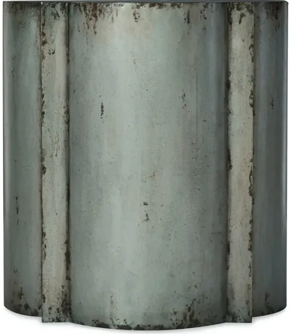 Maddux Industrial Loft Antique Silver Ombre Iron Cylinder Round Drum End Table