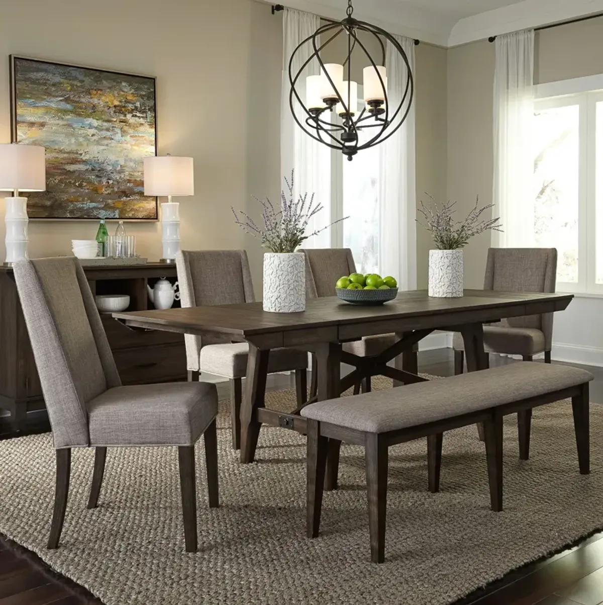 Angelica Brown 7 Pc Dining Room with Gray Side Chairs