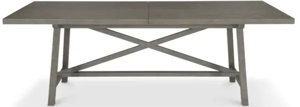 88"W x 44"D x 30"H; 124"W with leaves Product weight: 298 lbs. The Albion dining table perfectly bridges the gap between formal dining and a more casual setting. The sleek lines and tapered legs offer an update to traditional farmhouse style tables, while the weathered finish showcases a relaxed elegance. Pewter finish on tabletop with two 18" leaves Adjustable glides White oak solids and knotty wood veneer Pewter finish on base with "X" shaped center stretcher Specifications subject to change without notice Manufacturer's 3-year limited warranty , Wood