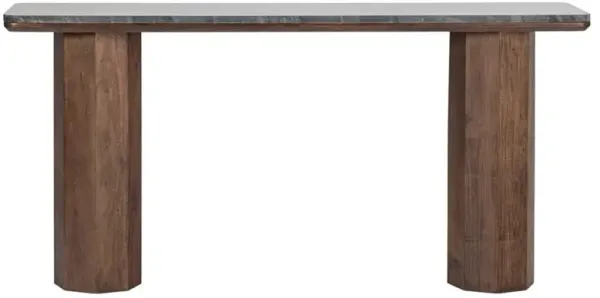Nyra Rustic Lodge Black Marble Brown Wood Console Table