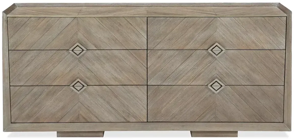 Ellie Modern Classic Light Grey Oak Wood Bronze Metal Double Dresser