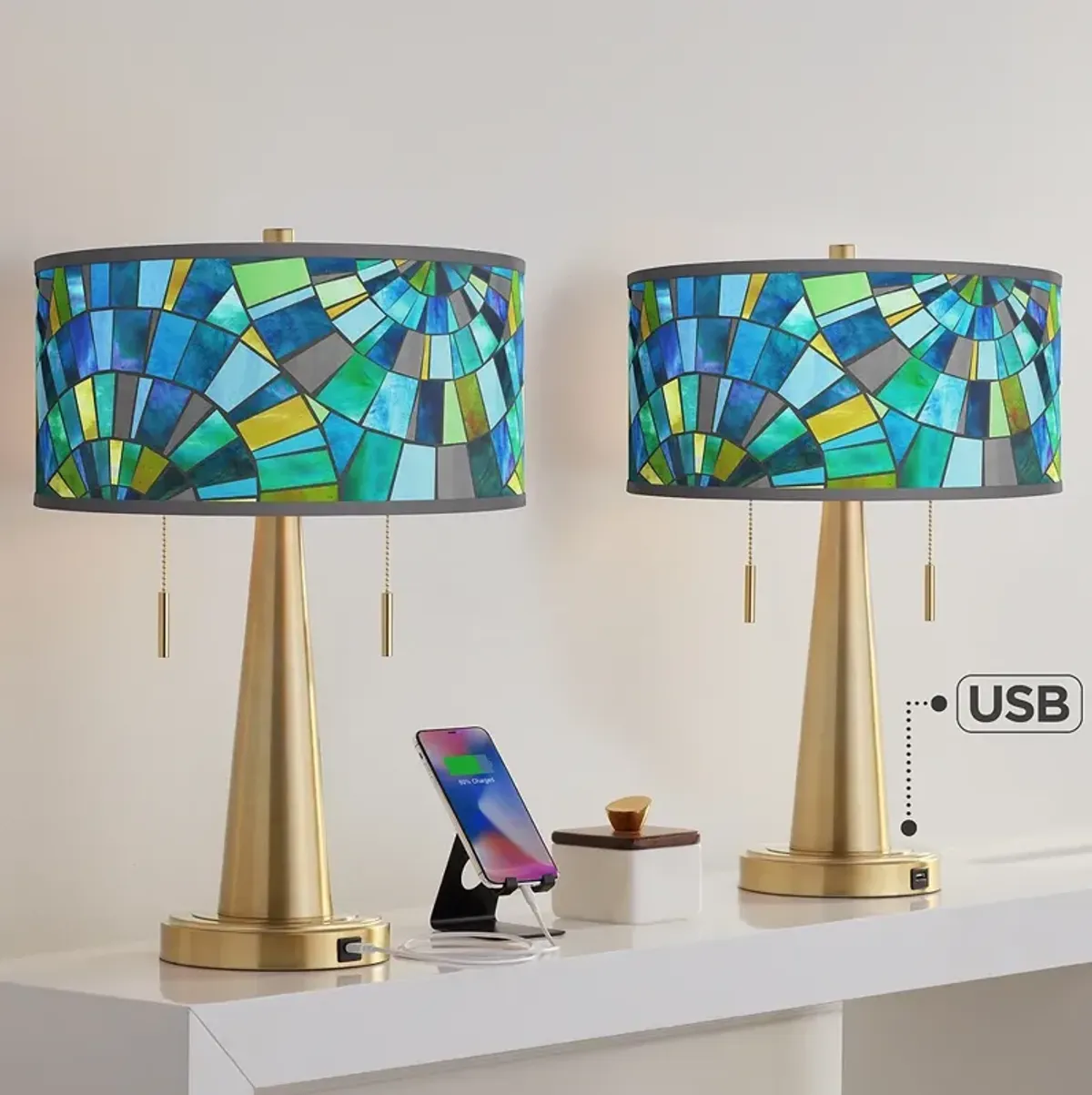 Lagos Mosaic Vicki Gold USB Table Lamps Set of 2