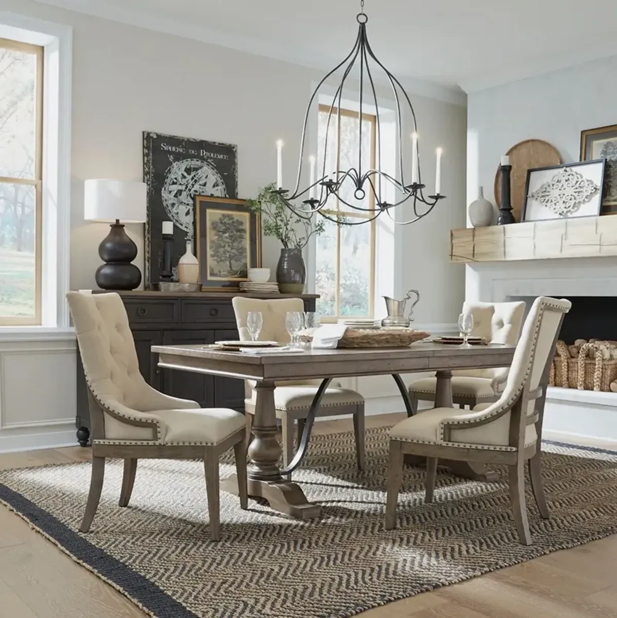 Streamdale 5 Piece Dining Set: Weathered Gray Table, Beige Chairs