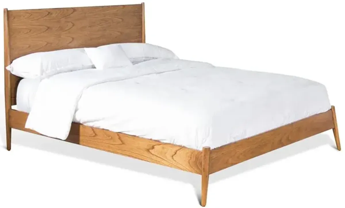 Oak is highly prized for its durability, resistance to scratches, and distinctive grain. This bed's sleek lines and smooth surfaces show off the wood's beauty to perfection. The sling-style top-grain leather headboard adds to the organic elegance. Materials • Frame, Solid Oak; Oak Veneer; Poplar Engineered Wood • Upholstery, Top Grain Leather • Fill, 100% Polyurethane Foam • Base, Solid Oak Specifications • Size: King • Weight Capacity: 550 lb • Headboard Height: 50.98" • Footboard Height: 24.02" • Box Spring Required: Not Required • Adjustable Bed Frame Compatible: Yes • Has Slats: Yes • Slat Type: Slat Roll • Distance between Slats: 2.76" • Floor to Top of Slat Height: 16.14" • Bed Backing: Dark Fabric • Frame Construction Joinery: Butt Joint • Made In: Vietnam