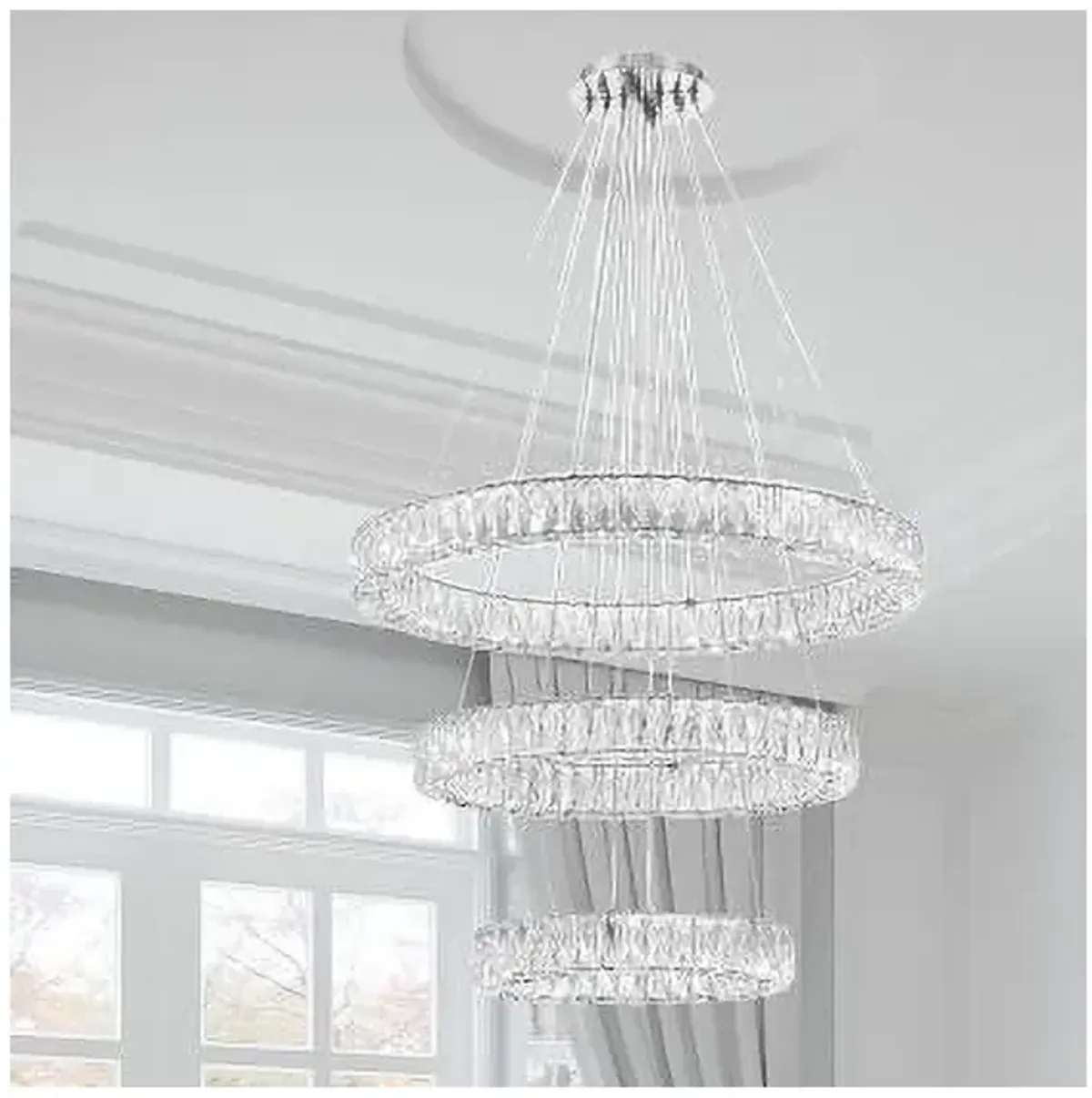 Tura 30 Inch Chandelier, Classic Chrome Beaded Candelabra Design - Benzara