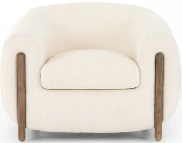 Riley Mid Century Cream Performance Brown Wood Barrel Chair