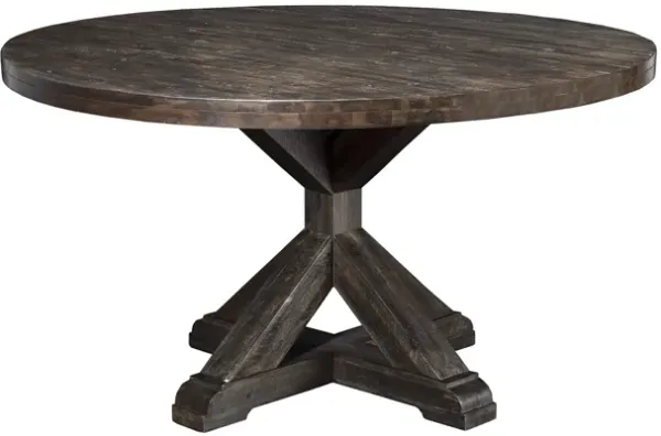 John Thomas Vista 60 Inch Solid Round Table Top with Banks Pedestal Base in Hickory & Coal