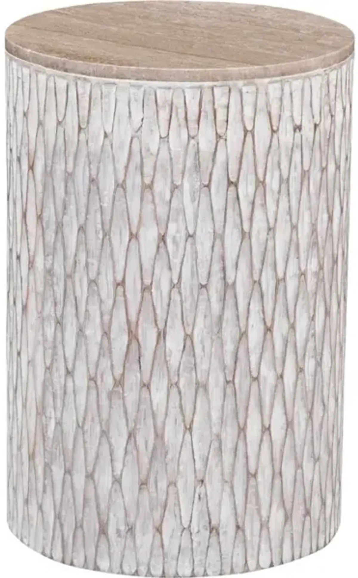 Set of 2 Emiliano Faux Shagreen Nesting Tables - White