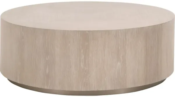 Lionel Coastal Beach Natural Grey Oak Wood Large Round Drum Coffee Table