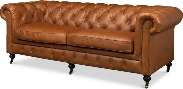 Allan Rustic Lodge Brown Leather Tufted Sofa - 88"