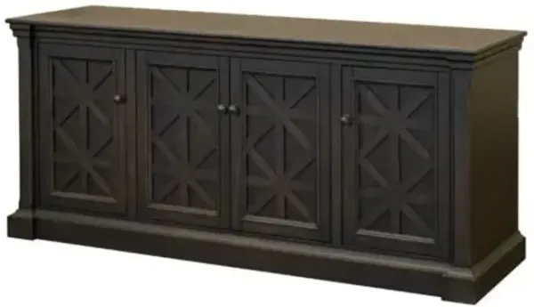 Martin Furniture Kingston Dark Chocolate Rub Through with Criss-Cross Detail 4-Door Desk Console