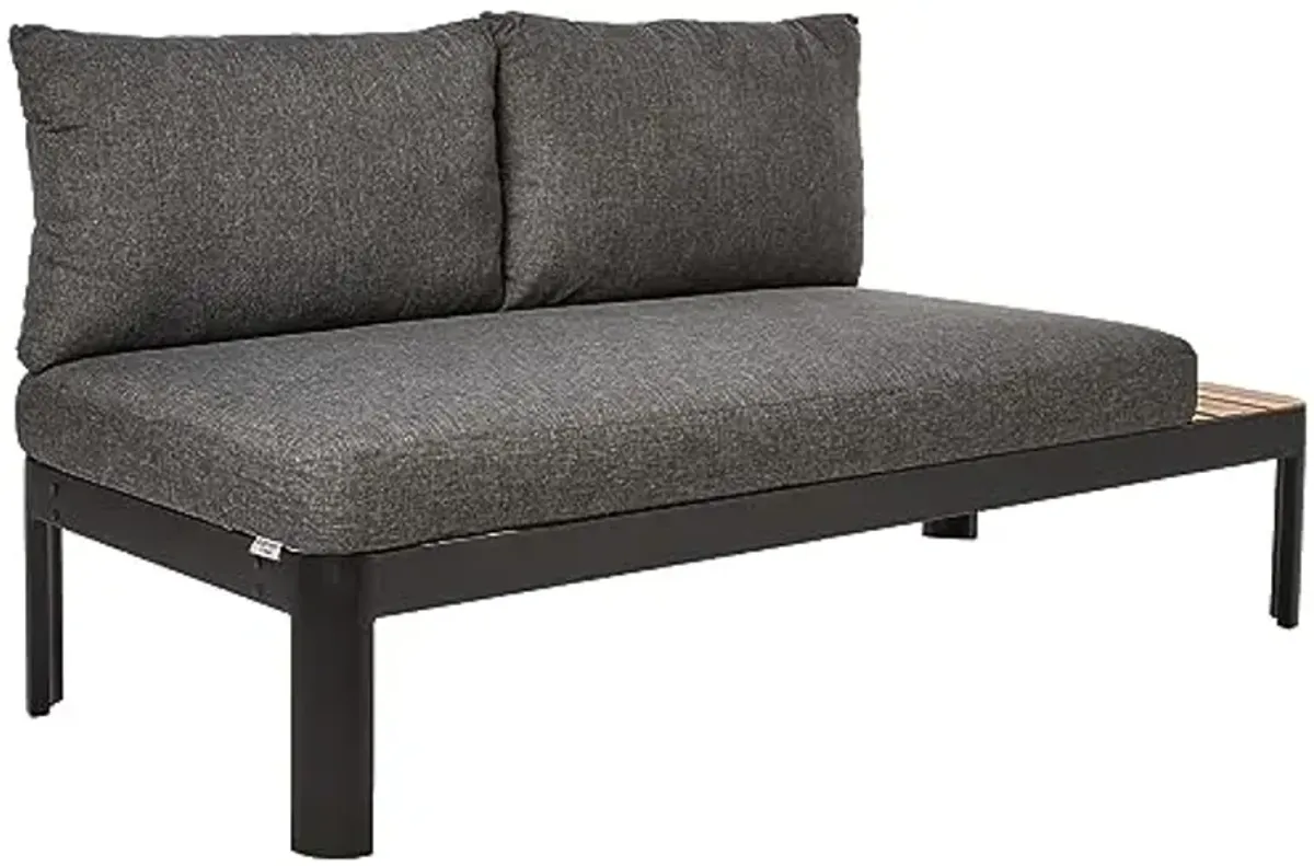 Mia Outdoor Loveseat Bench, Gray Cushions, Brown Solid Wood, 47 Inch - Benzara