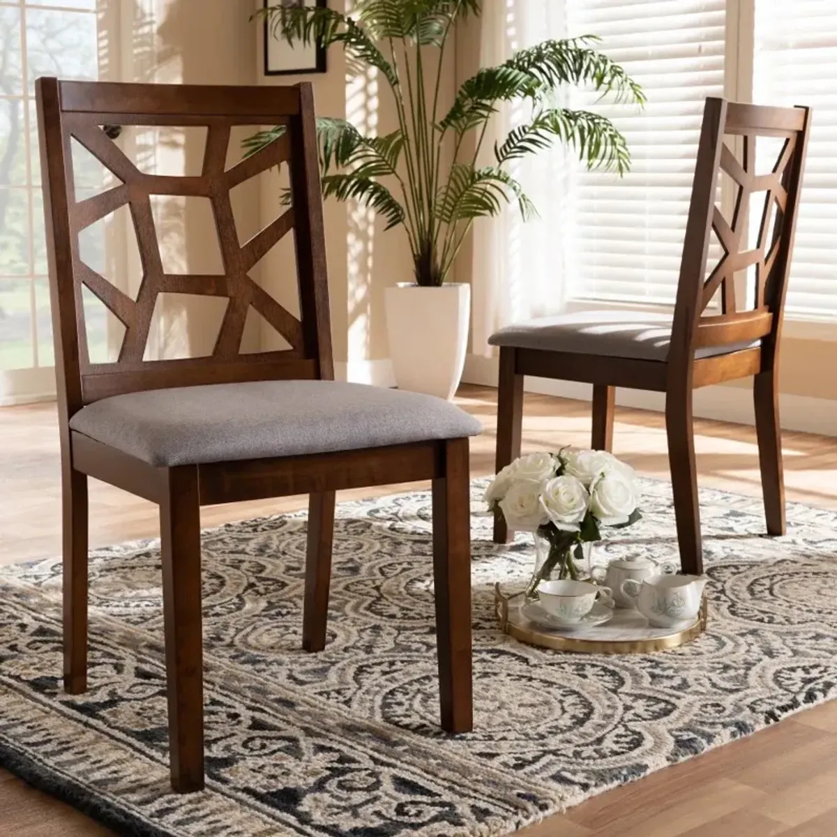Bistro - Wide Contemporary Fabric Dining Chair With Cushion (Set of 2) - Vintage Walnut