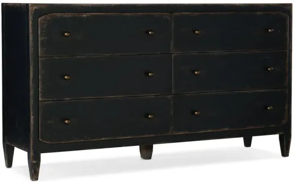 Four Hands Ezri Carved Black 6-Drawer Dresser