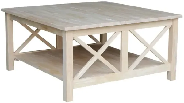 Hivvago Square Unfinished Solid Wood Coffee Table with Bottom Shelf