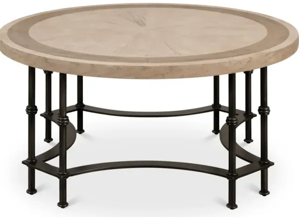 Dinelle Rustic Brown Elm Wood Top Brown Iron Leg Round Coffee Table