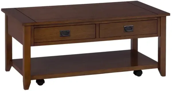 Mission Oak Castered Cocktail Table with 2 Pull-Thru Drawers