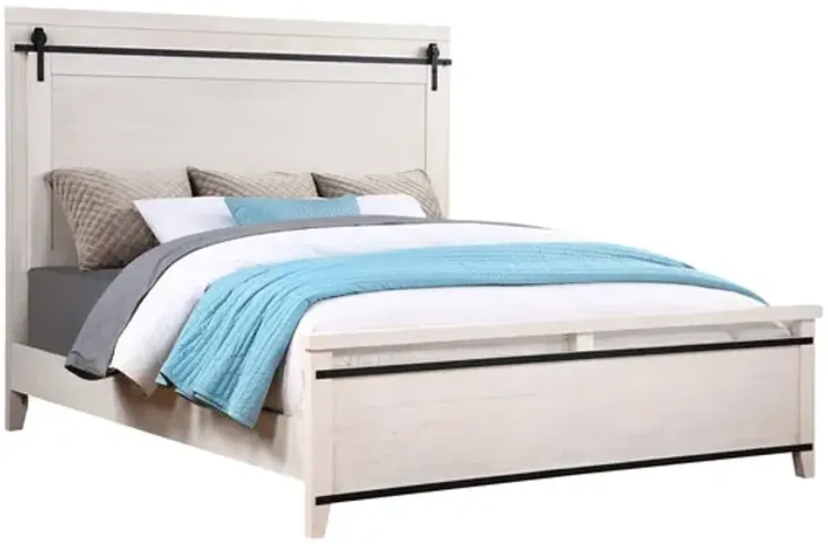 American Woodcrafters Brighten Queen Panel Bed Antique White/Charcoal Brown