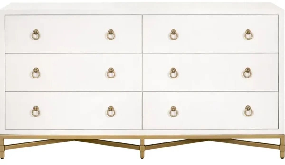 Julia Cerused 6-Drawer Dresser, White/Stained Gold