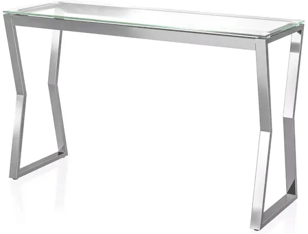 Tom 53 Inch Console, Rectangular Top, Square Legs, Chrome Brushed Metal