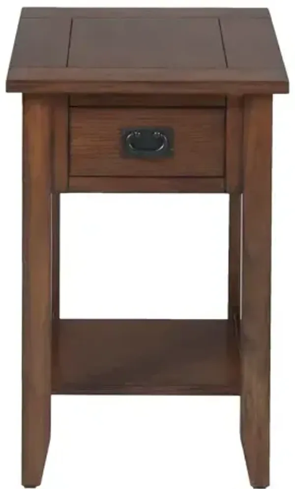 Mission Oak Chairside Table with 1 Drawer and 1 Shelf