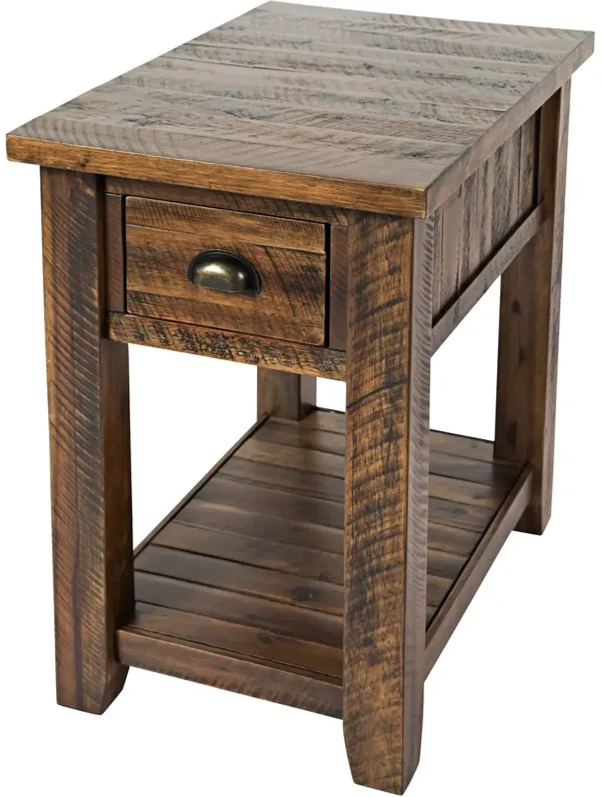 Jofran Kona Grove Distressed Rustic Solid Acacia Chairside End Table with Shelf