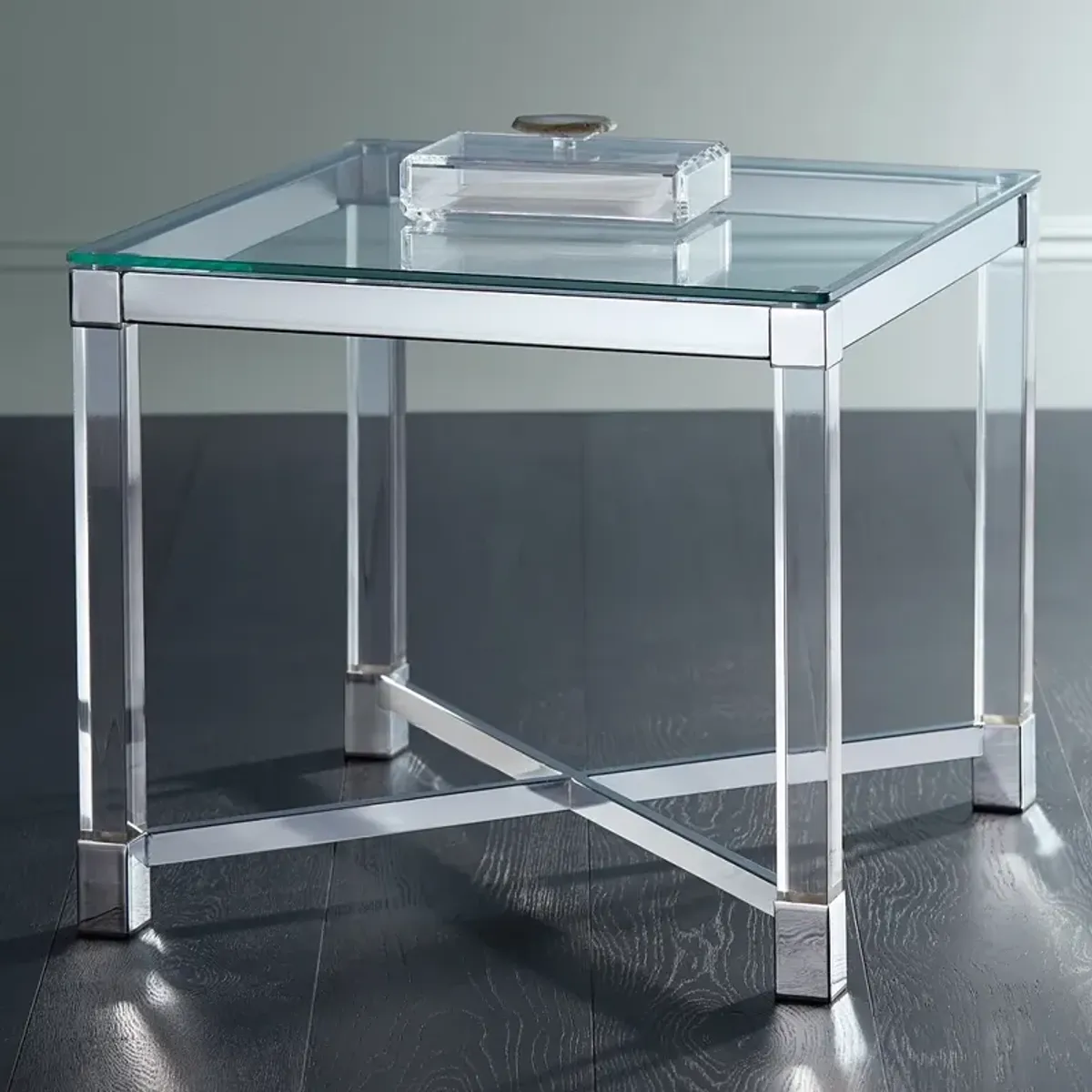 Edmund Accent Table with X-cross Glossy White and Chrome