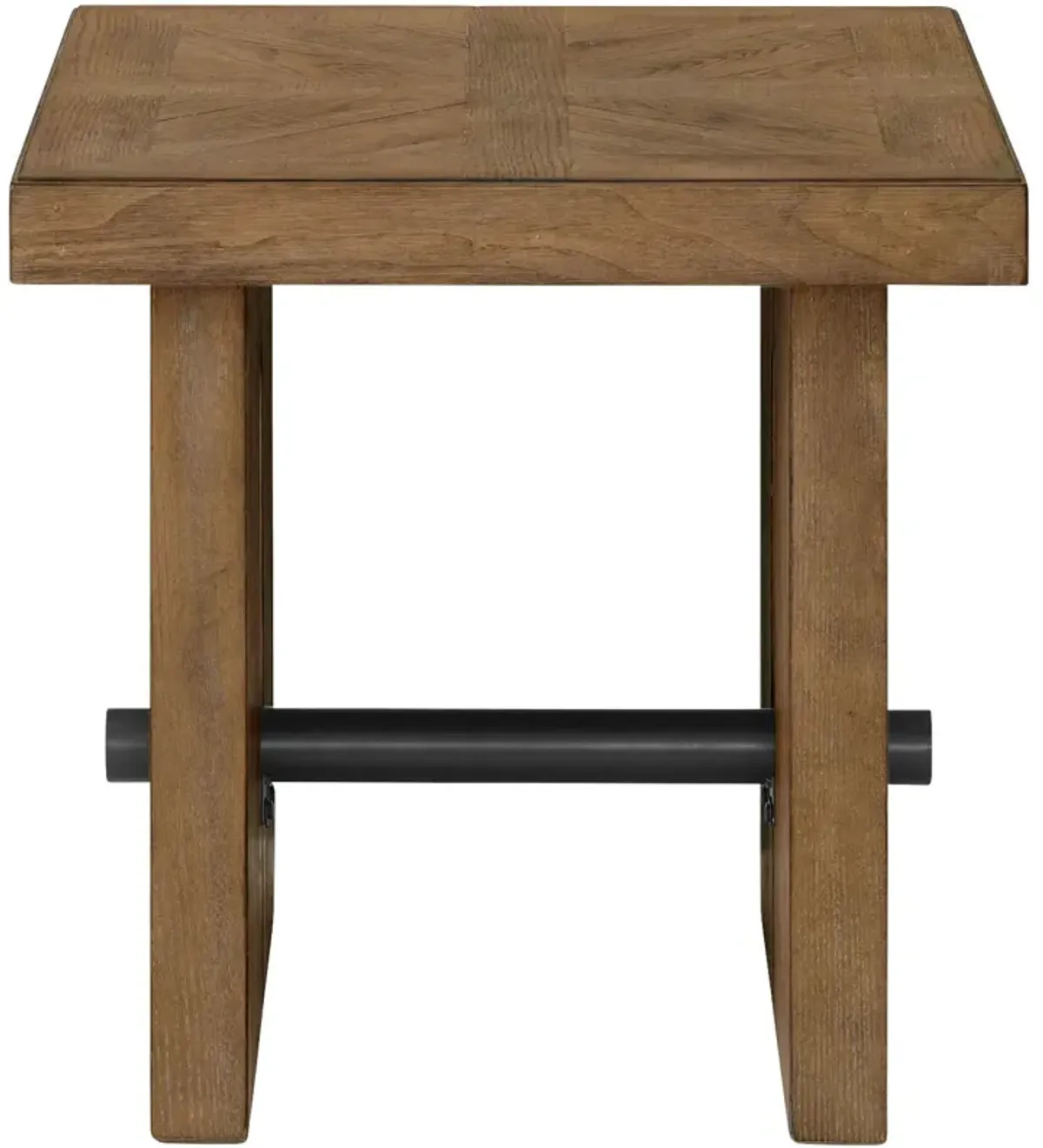 Sunny Designs Weathered Brown Round Chairside Table with Black Metal Base