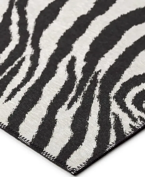 5' x 8' Zebra Print Shag Handmade Non Skid Area Rug - Black And Gray