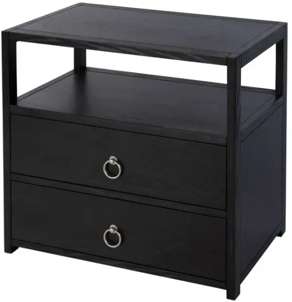 Dorwin Industrial Loft Burnished Black Acacia Wood 2 Drawer Nightstand