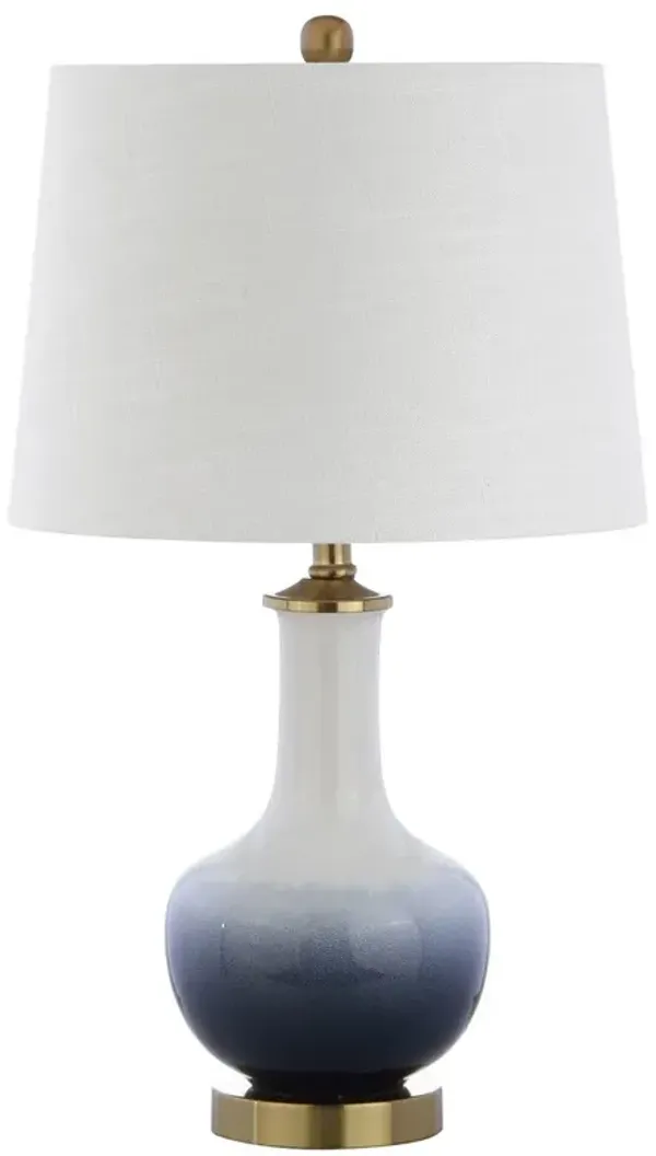 Curves and shine combine to create an alchemy of traditional and modern design in this attractive table lamp. The linen hardback drum shade adds a soft element to the glazed ceramic and brushed brass base. The designer elements extend to the plug, with a 60" cord. Materials Base, Ceramic/Brass; Shade, Linen Details • Beautiful to display or easy to conceal: the 60" cord is plastic wrapped. • On-off rotary switch on socket. • Eco-friendly 9W LED bulb included. • Takes one bulb and compatible with any 12W LED or 100W TYPE "A" or 23W CFL. • UL Listed. Dimensions 27Hx15Wx15D in Made In China