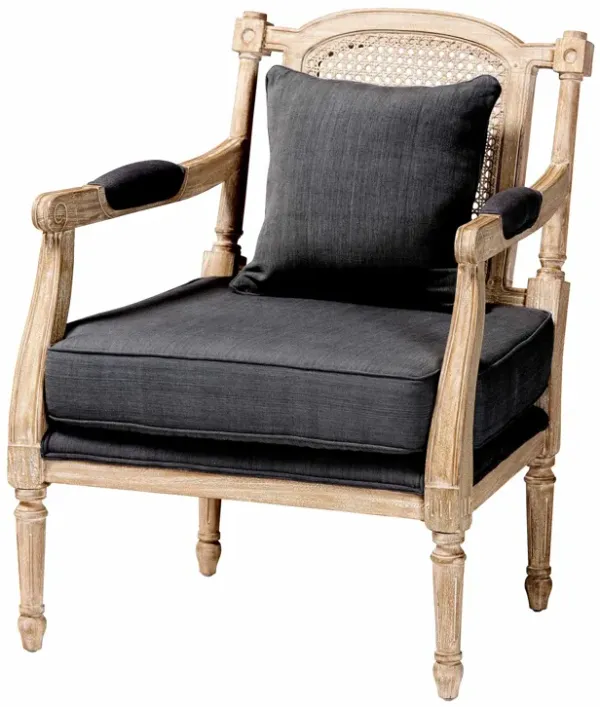 Elois Cane/Linen-Blend Accent Chair - Black, Comfortable, Durable, Cushioned