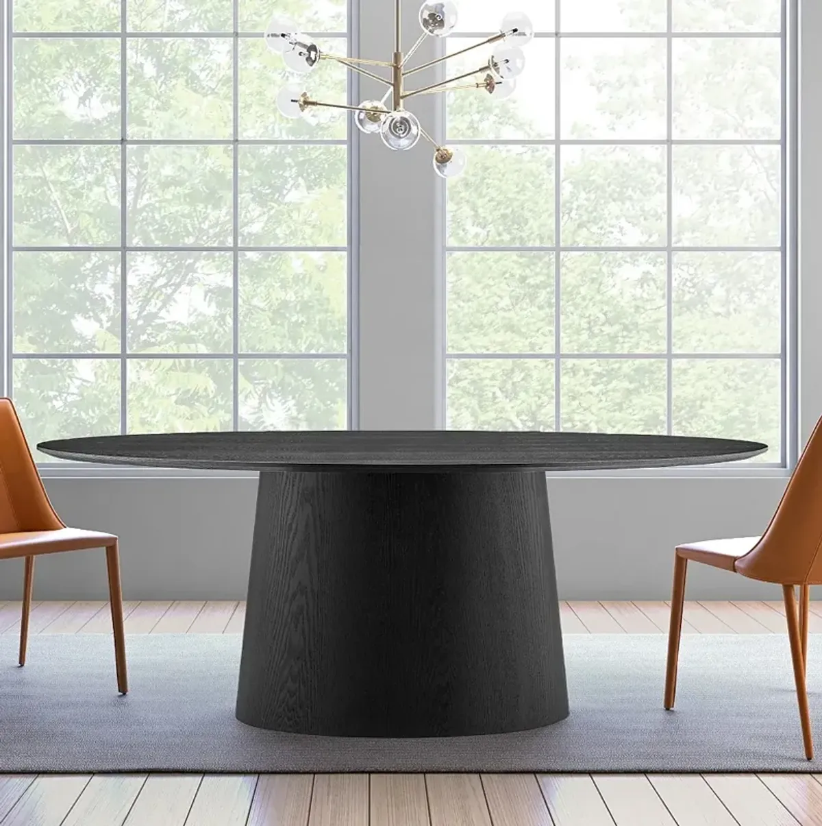 Deodat 78 1/2"W Ash Veneered Matte Black Oval Dining Table