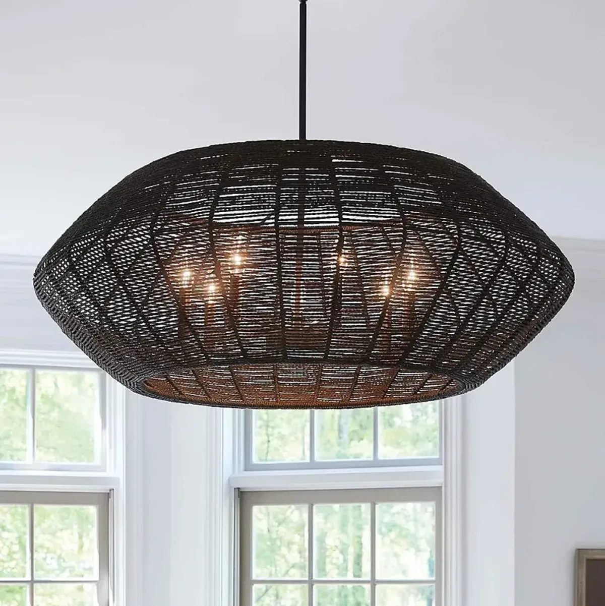 Hinkley Luca 38" Wide Black Weave Modern Drum Pendant Chandelier
