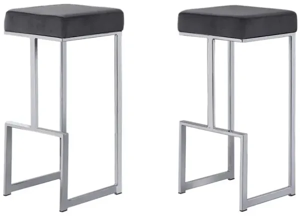 Best Master Furniture Dorrington Modern Velvet Backless Bar Stool in Gray/Silver (Set of 2)