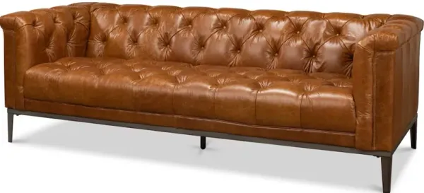 Thornton Modern Classic Brown Leather Oak Wood Sofa - 100"