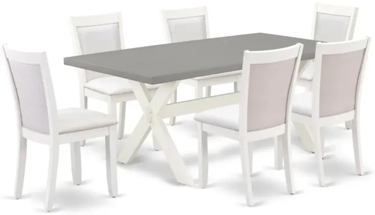 Boca Solid Wood Dining Table and 6 Upholstered Dining Chairs - White