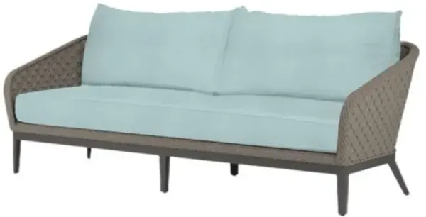Informed by mid-century design, the Eleandra Sofa incorporates the best of classic proportions with modern materials. Inspired by the subtle tones of natural stone, this piece features a rounded tube frame and mid-rise back, perfectly scaled for smaller spaces and casting a compelling profile. It boasts a fully welded, scratch-resistant powder-coated aluminum frame and is wrapped in weather-resistant colorfast rope. The sofa includes weather-resistant, high-resiliency foam cushions and non-marking plastic glides. With commercial quality construction, Details • Fully welded, scratch-resistant powder-coated aluminum frame in Graphite Finish. Wrapped in weather-resistant colorfast rope in Stone grey. Weather resistant, high-resiliency foam cushions. Removable cushion(s). • FABRIC SWATCHES; to receive a complimentary fabric swatch, contact us with your name, mailing address, and phone number as well as the product sku and the fabric name. Dimensions • 30.1Hx86.81Wx30.9D in Care • This rope furniture is crafted out of olefin rope, which is all-weather, colorfast, and stain resistant. Blot spills gently, and clean stains with mild soap and water and a soft cloth or very soft bristle brush. Do not use a coarse brush, or any abrasives when cleaning, as this may damage the rope and cause fraying. Cover your outdoor furniture with outdoor covers (sold separately) when left outside during inclement weather, and/or store when not in use. Please Note • Suitable for indoor and outdoor use. Ability to return may depend on color.