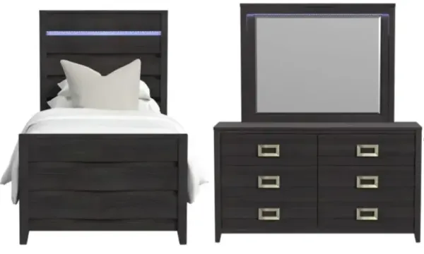 Elements International Tobias 3-Piece Black Twin Panel Bedroom Set