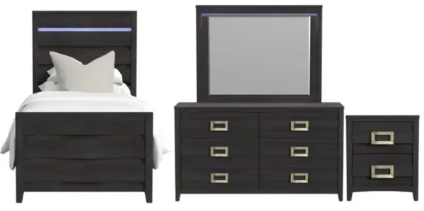 Elements International Tobias 4-Piece Black Twin Panel Bedroom Set