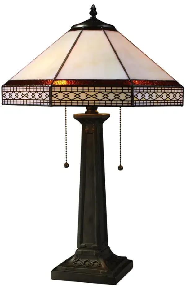 Table Lamp with Tiffany Shade and Geometric Design, Multicolor - Benzara
