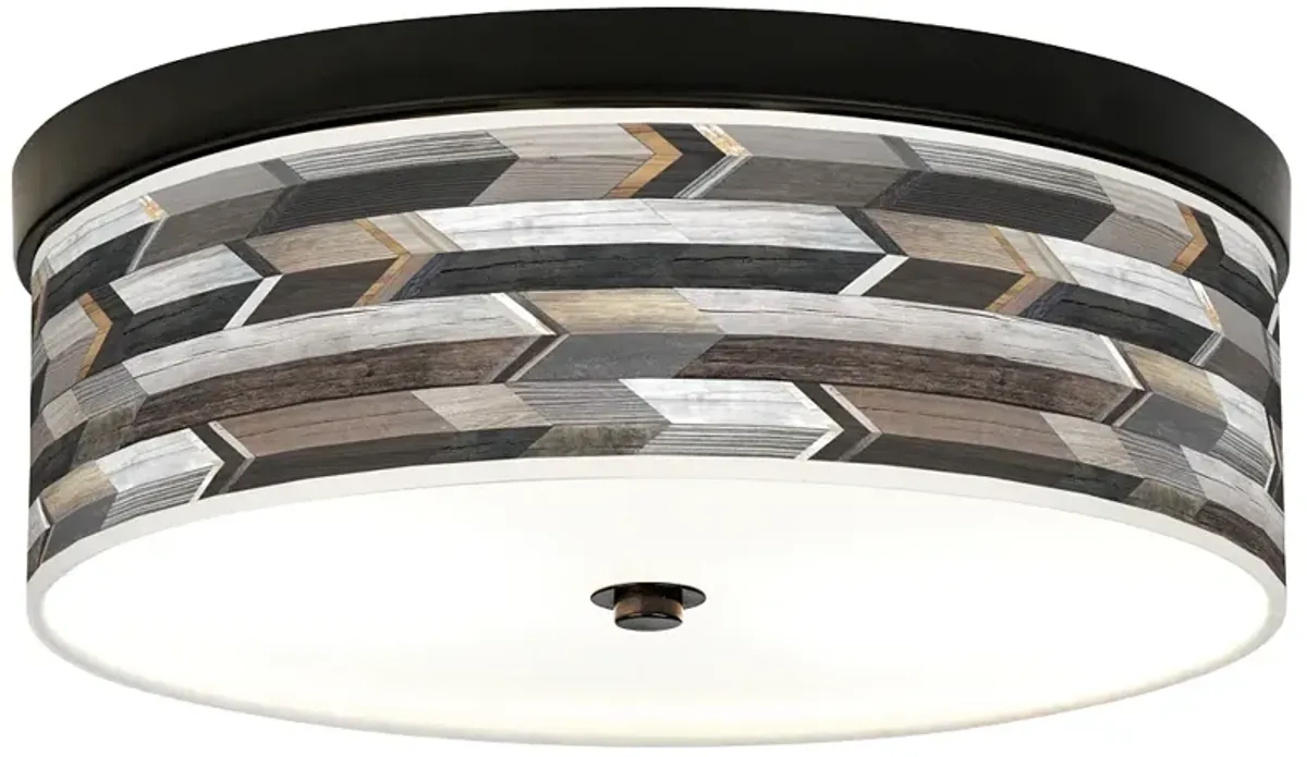 Giclee Gallery Woodwork Arrows Pattern 14" Bronze LED Ceiling Light