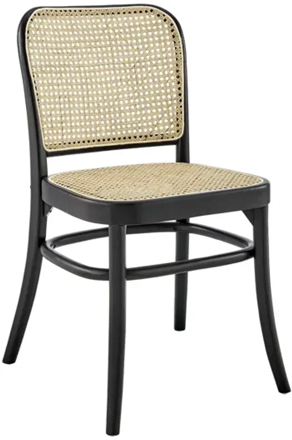 Mina Modern Classic Black Wood Cane Dining Side Chair