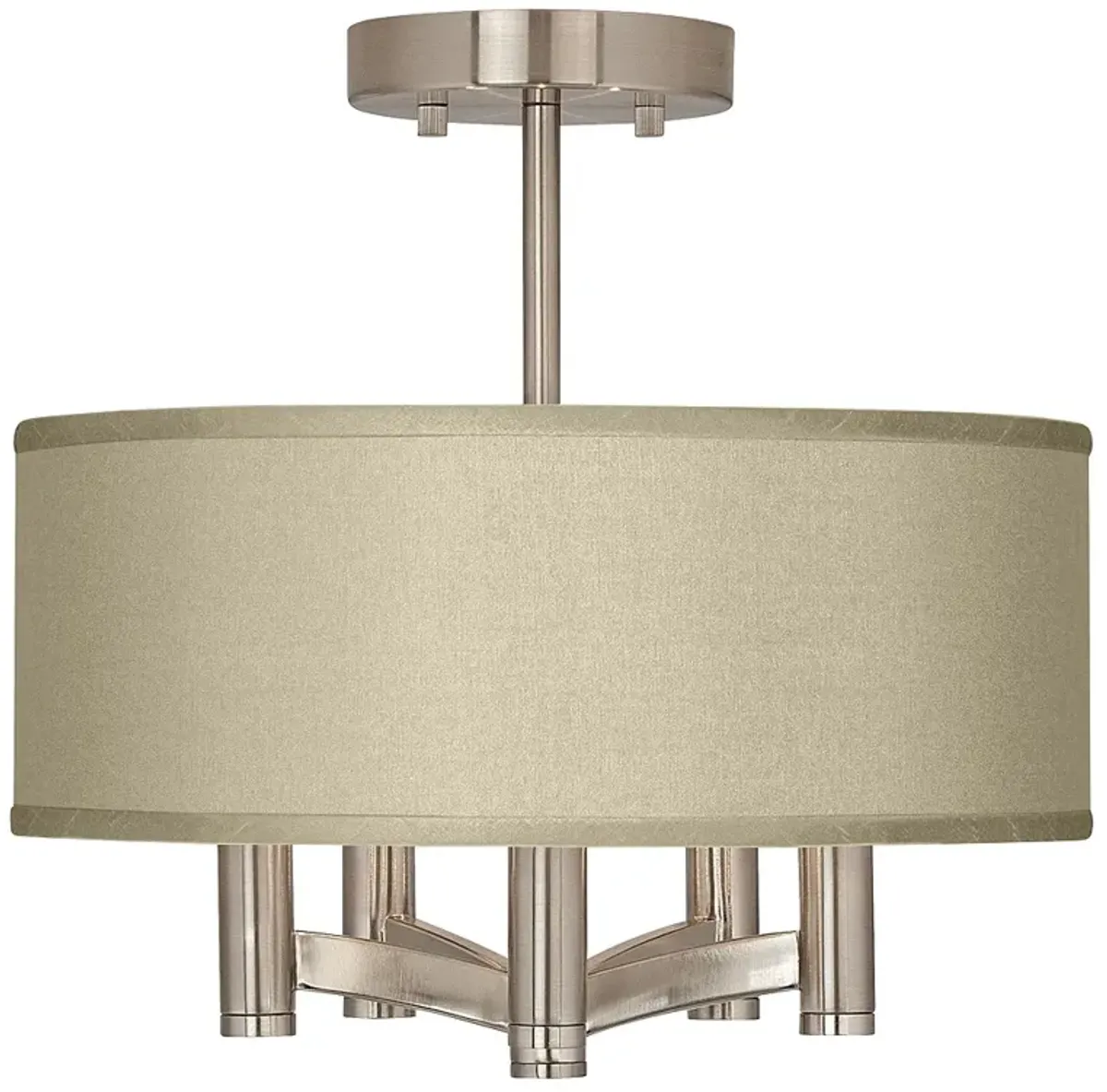 Possini Euro Ava 14" Sesame Faux Silk 5-Light Nickel Ceiling Light