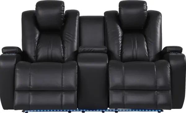 Kingvale Court Black Dual Power Reclining Console Loveseat