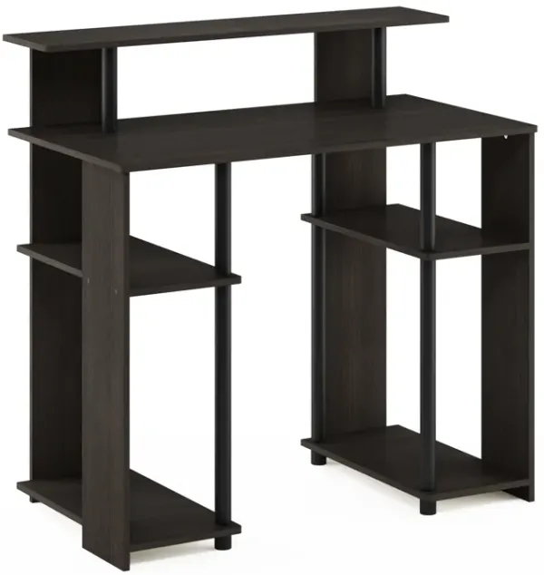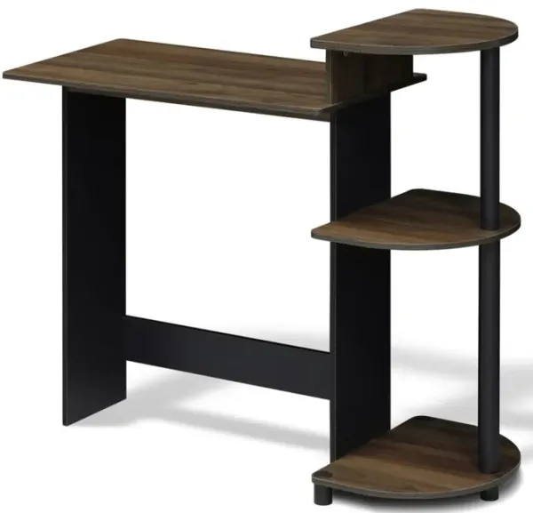 Compact Computer Desk with Shelves, Americano/Black