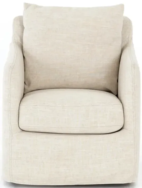 Darcie Light Beige Leatherette and Fabric Swivel Armchair