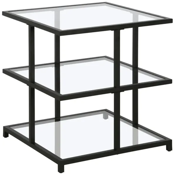 Glass and Steel Square End Table with Two Shelves, Modern Storage for Any Room