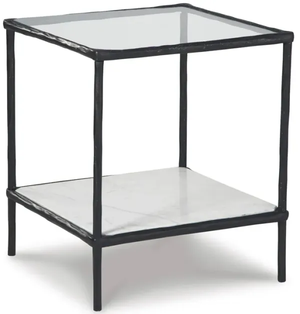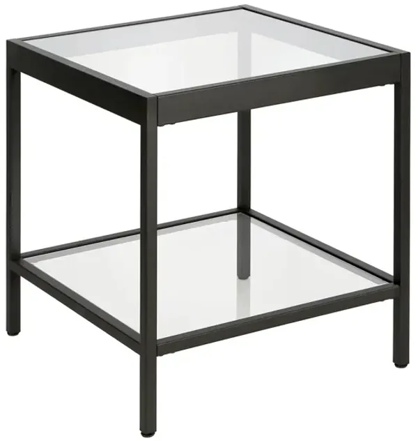 Square Glass and Steel End Table with Shelf, Modern Accent Table for Living Room