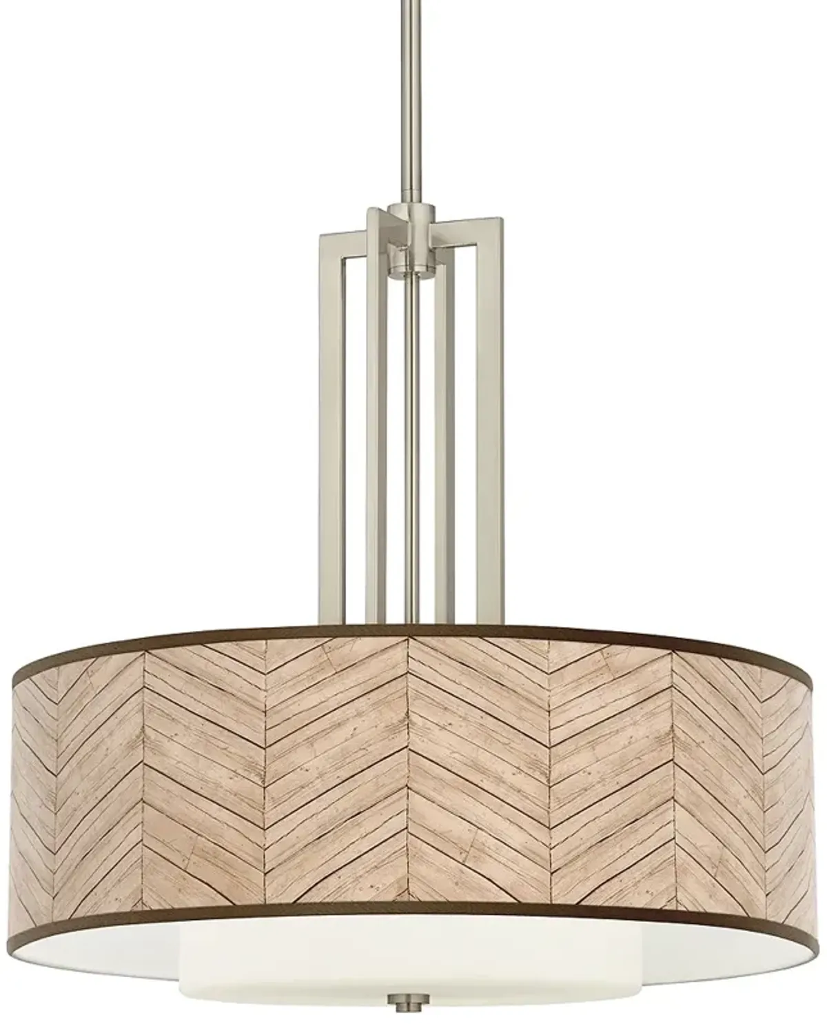 Faux Pleated Giclee Print Shade with 24" Nickel 4-Light Chandelier